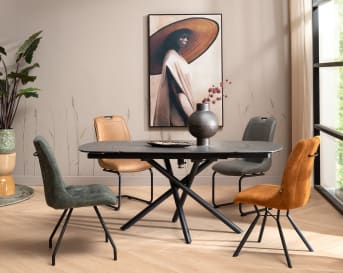 Wil je een eettafel die niet teveel plaats inneemt, maar waaraan je wel al je vrienden kunt uitnodigen? Dan is de Preston uitschuiftafel precies wat je zoekt. Hij heeft een basisformaat van 120x90cm en fraaie afgeronde hoeken. Met een super handig draaimechanisme vergroot je deze compacte tafel echter tot een ruime tafel van 180 cm wanneer je maar wilt! De centrale poot zorgt ervoor dat je aan alle kanten prettig kunt zitten en het oersterke keramiek op glas blad maakt de tafel uitermate 'feestbestendig'. Dit is de antraciet uitvoering, maar hij is er ook in een lichte marmerlook.